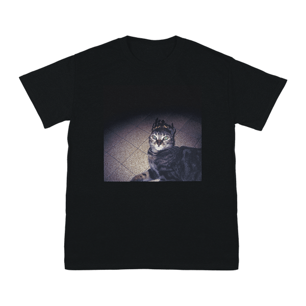 コットン100%、ブラックのTシャツ。